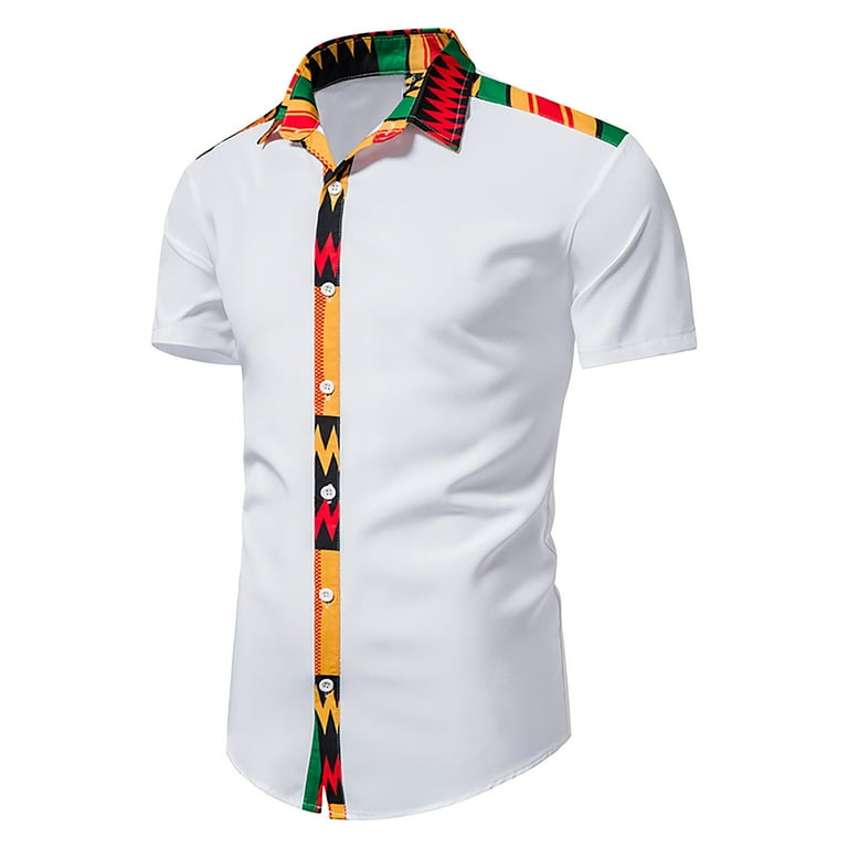 Pkeoh Mens T Shirt White T Shirts For Men Casual Short Sleeve Printed Patchwork Button Shirt Pocket Tops Blouse White Polo Shirts For Men Walmart Com